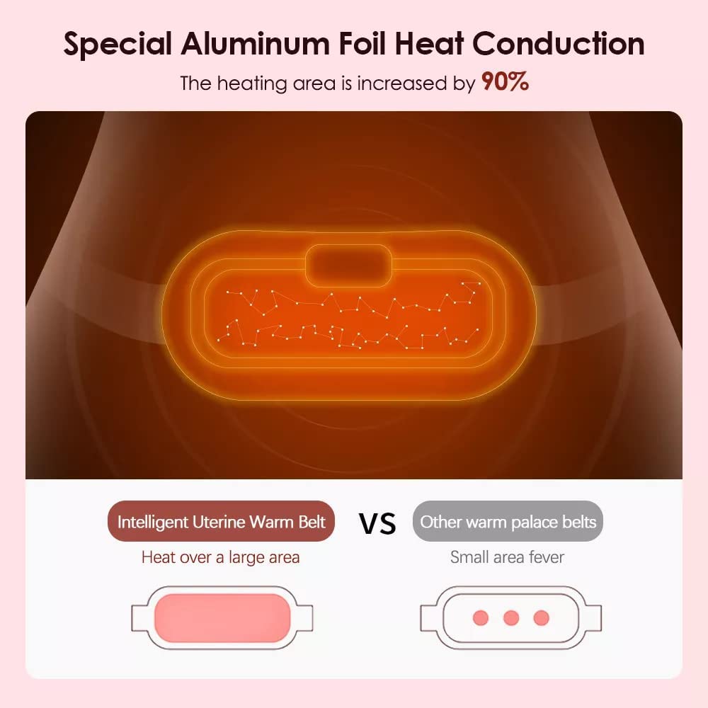 The cordless heating pad for cramps belt is made of high-quality soft fabric, which is light and breathable, as well as comforting and warm when worn against the skin. The speed and temperature are displayed on an LED display screen. The adjustable high-elastic belt can be readily adjusted for all waistlines